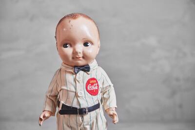 こちらはコカコーラのつなぎを着たもので、コンディションは塗装剝げや指先部分の破損などがございます。